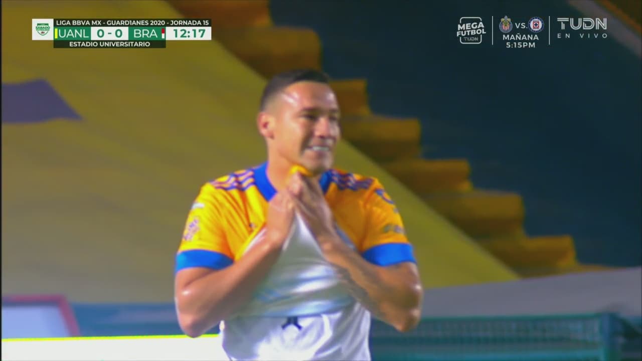 Carioca se atrevió a sacar un disparo de media distancia y exigió al portero exTigres, Enrique Palos.