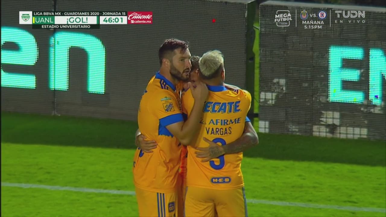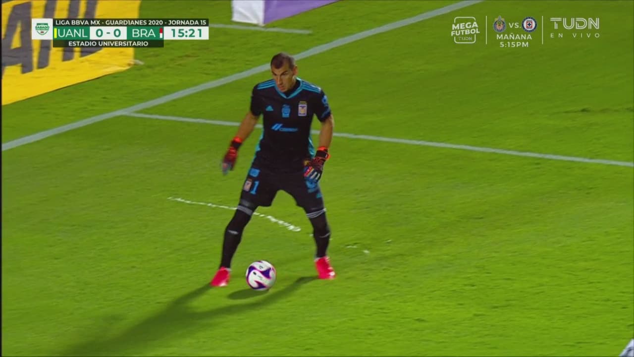 Otra vez Velázquez, ahora para bien salvando su arco de segundo gol de Tigres que estaba por firmar Edu Vargas.