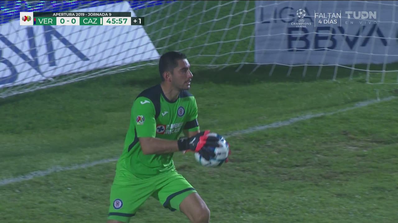 Luis Lozoya se mete al área y saca un flojo disparo que termina en las manos del arquero de Cruz Azul al 46’.