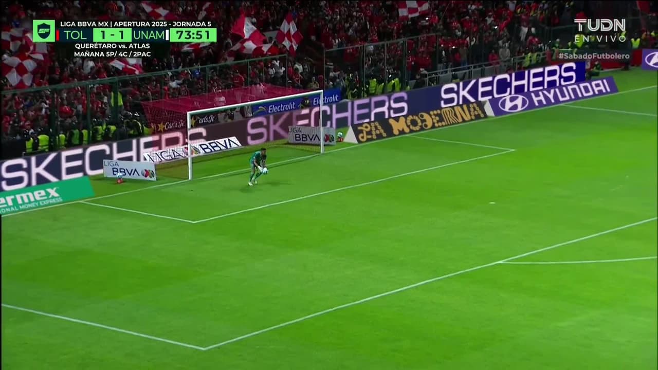Tiro atajado por abajo a la izquierda. Adalberto Carrasquilla (Pumas UNAM) Disparo con la derecha desde más de 30 metros.