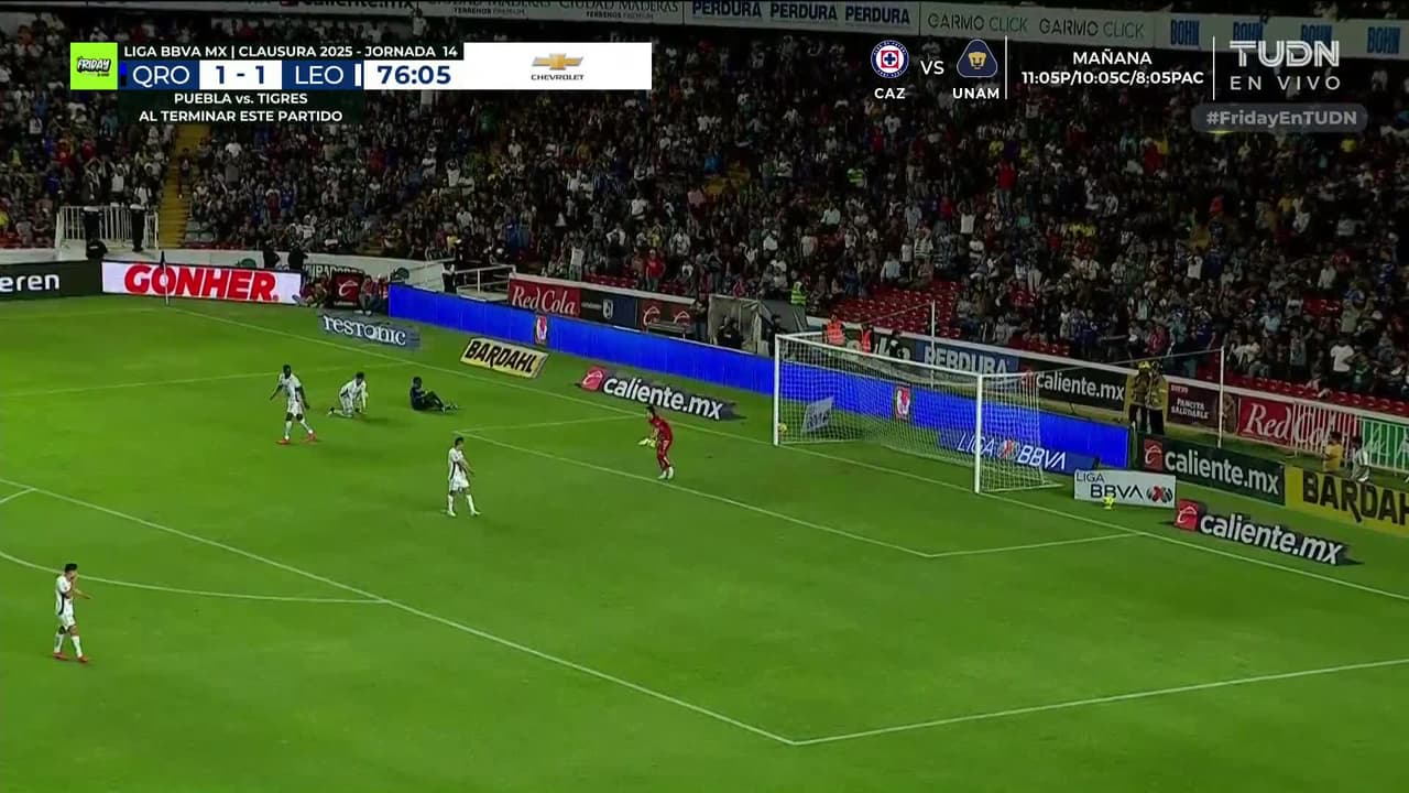 Tiro atajado. Adonis Preciado (Querétaro) zurdazo desde el centro del área.