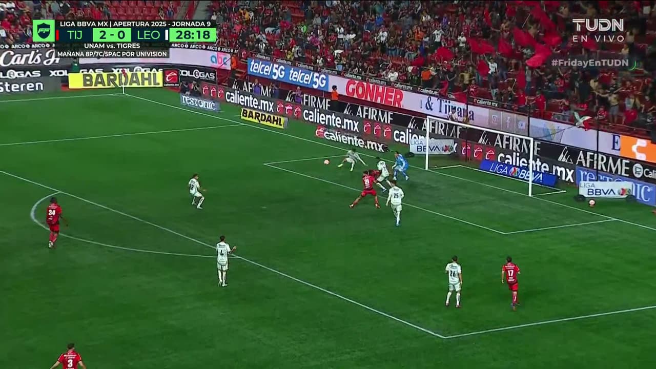Tiro atajado Por arriba en el centro del arco. Adonis Preciado (Club Tijuana) disparo de cabeza desde el centro del área. Asistencia de Rafael Fernández con un centro al área.