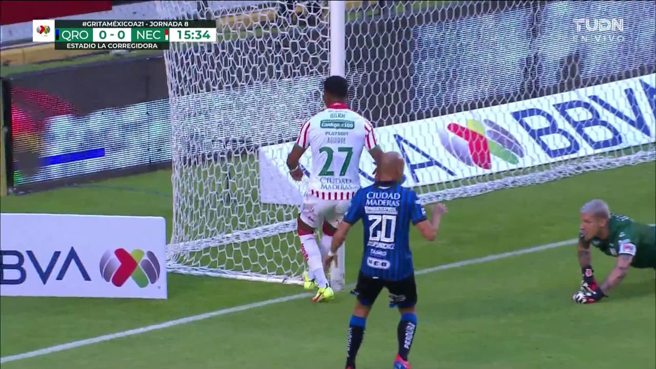 Remate parado. Agustín Oliveros (Necaxa) remate con la derecha desde el centro del área.