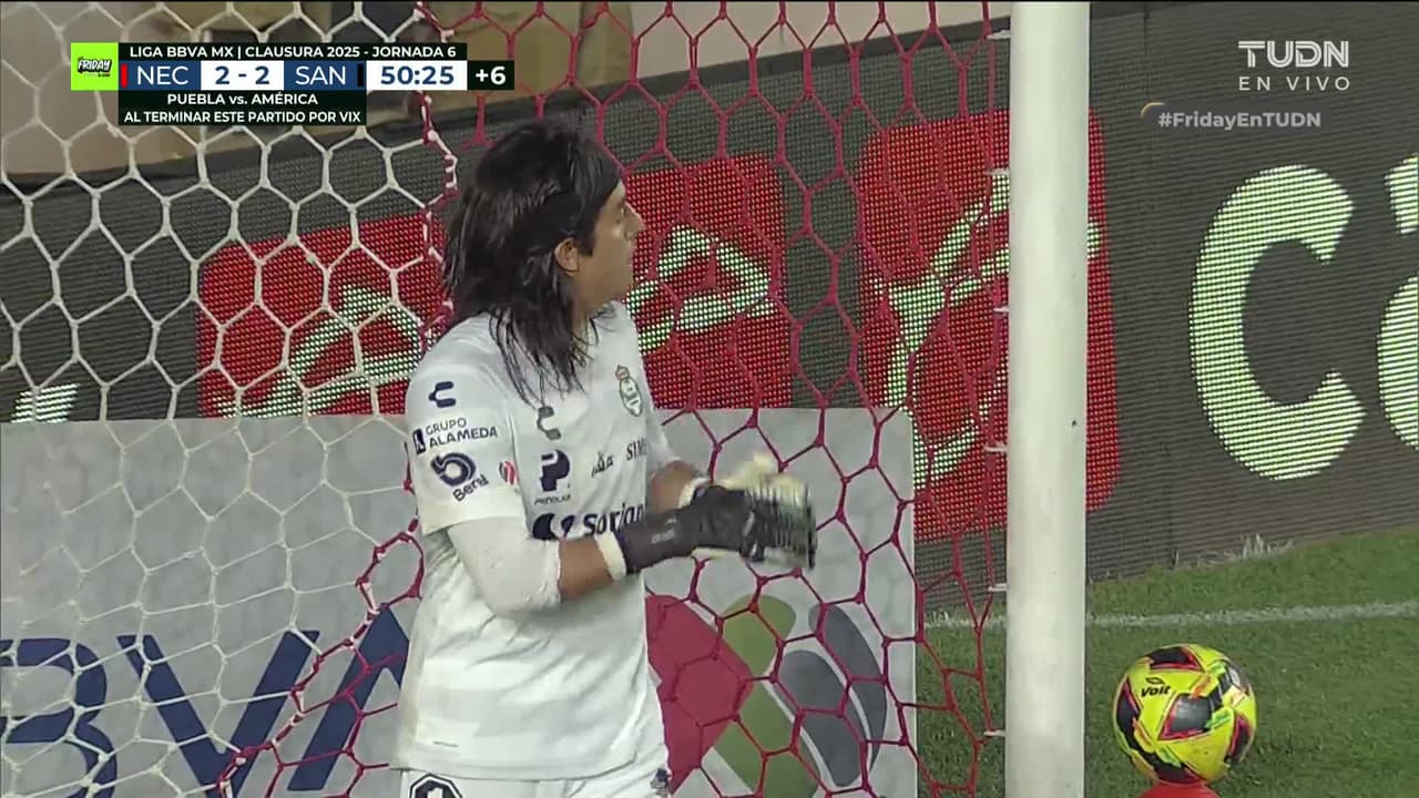 Tiro atajado. Agustín Palavecino (Necaxa) Disparo con la derecha desde fuera del área.