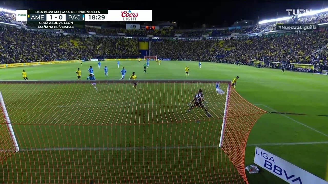 Tiro atajado al ángulo superior derecho. Alán Bautista (Pachuca) Disparo con la derecha desde fuera del área.
