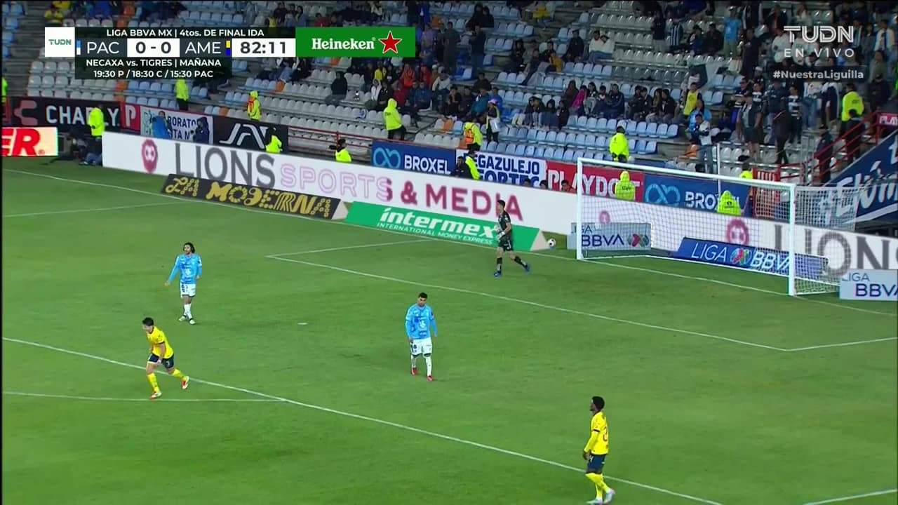 Tiro atajado. Alan Cervantes (América) Disparo con la derecha desde fuera del área.