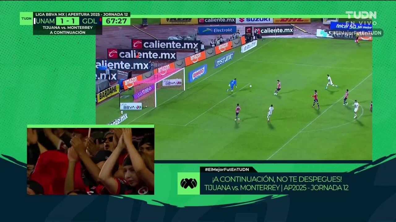 Tiro atajado al ángulo superior derecho. Alan Medina (Pumas UNAM) zurdazo desde fuera del área. Asistencia de José Macías.