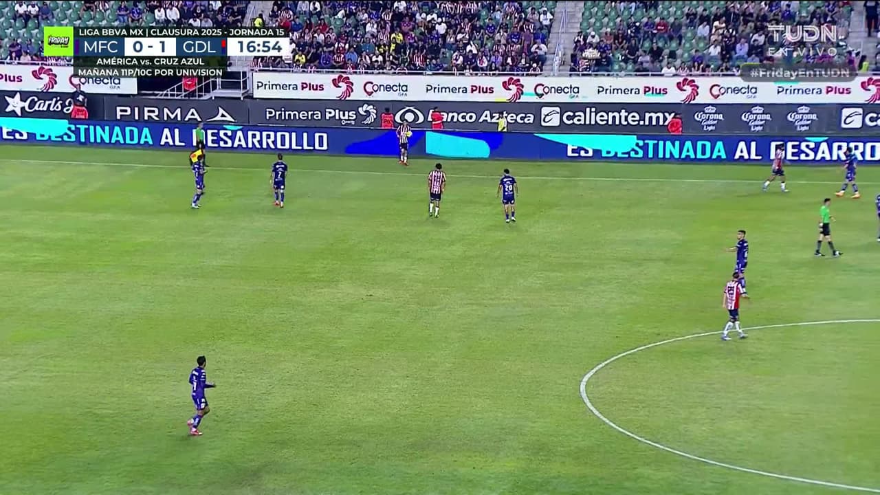 Tiro atajado. Alan Pulido (Chivas ) Disparo con la derecha desde el lado derecho dentro del área.
