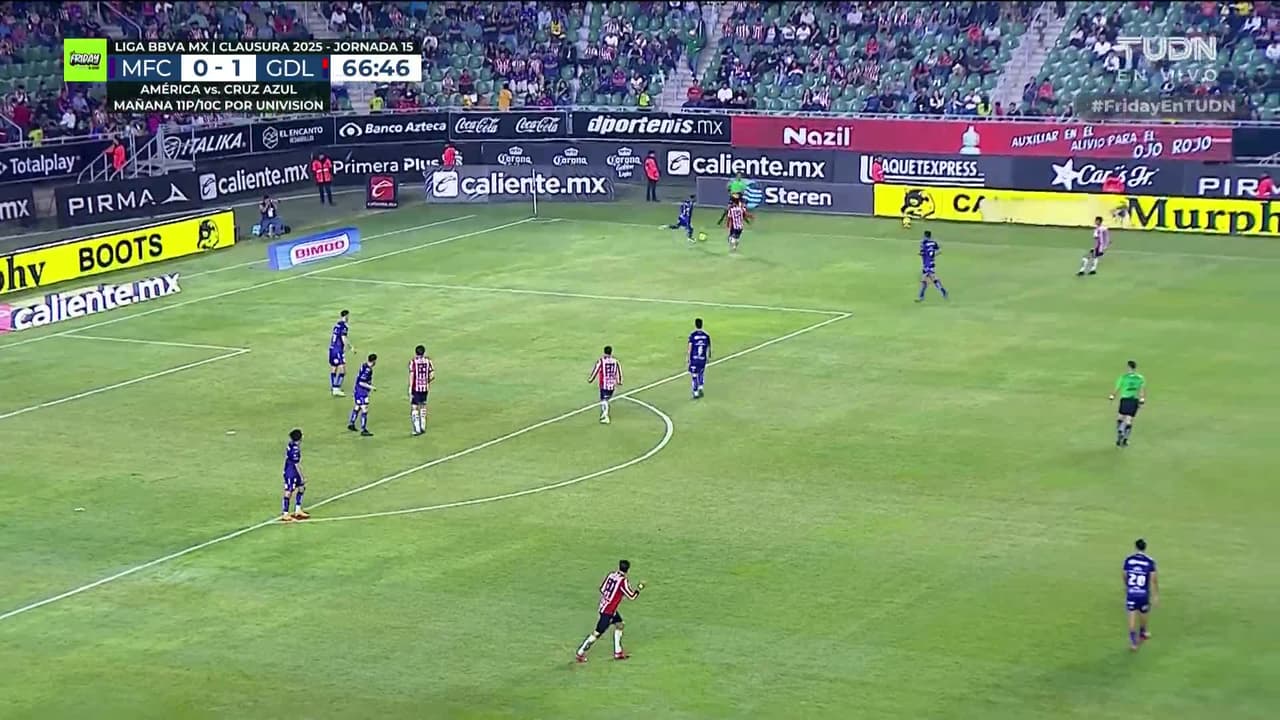 Tiro atajado al ángulo superior derecho. Alan Pulido (Chivas ) disparo de cabeza desde el centro del área. Asistencia de Miguel Gómez con un centro al área.