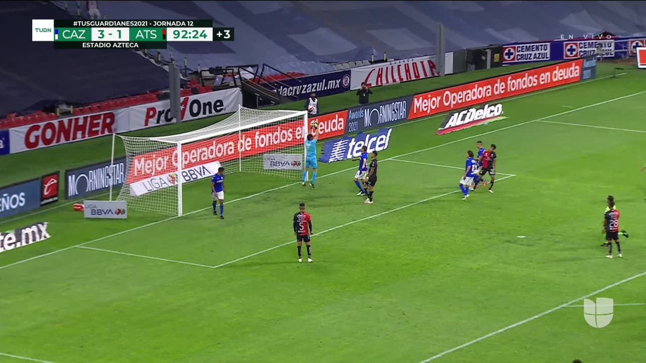 Tiro atajado. Aldo Rocha (Atlas) Disparo con la derecha desde el lado derecho dentro del área.