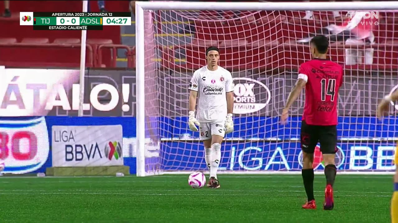 Tiro atajado Por arriba en el centro del arco. Alejandro Martínez (Club Tijuana) disparo de cabeza desde el centro del área. Asistencia de Francisco Contreras con un centro al área.
