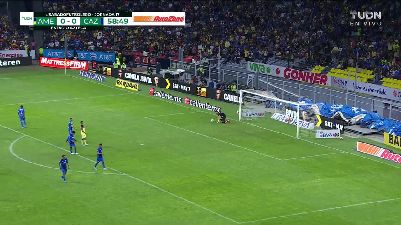 Tiro atajado raso al centro del arco. Alejandro Zendejas (América) Disparo con la derecha desde fuera del área. Asistencia de Federico Viñas.