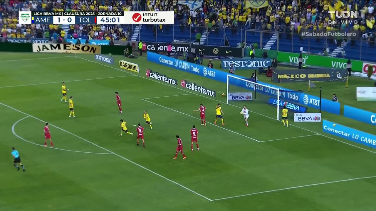 Tiro atajado junto al lado derecho de la portería. Álex Zendejas (América) zurdazo desde el lado derecho dentro del área. Asistencia de Érick Sánchez.