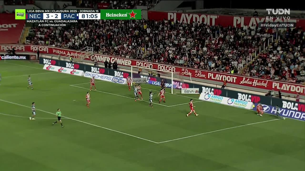 Tiro atajado raso al centro del arco. Alexéi Domínguez (Pachuca) Disparo con la derecha desde el lado izquierdo dentro del área. Asistencia de Alán Bautista.
