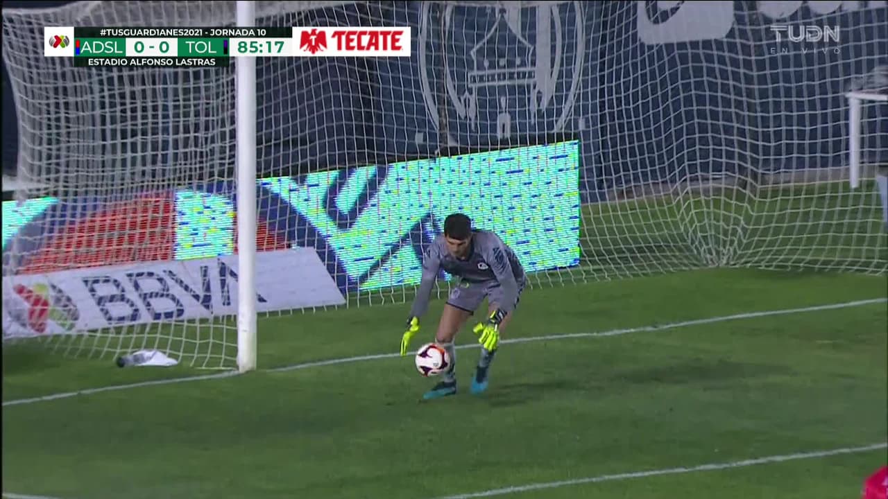 Tiro atajado por abajo a la izquierda. Alexis Canelo (Toluca) Disparo con la derecha desde el lado izquierdo dentro del área. Asistencia de Miguel Barbieri pase largo.