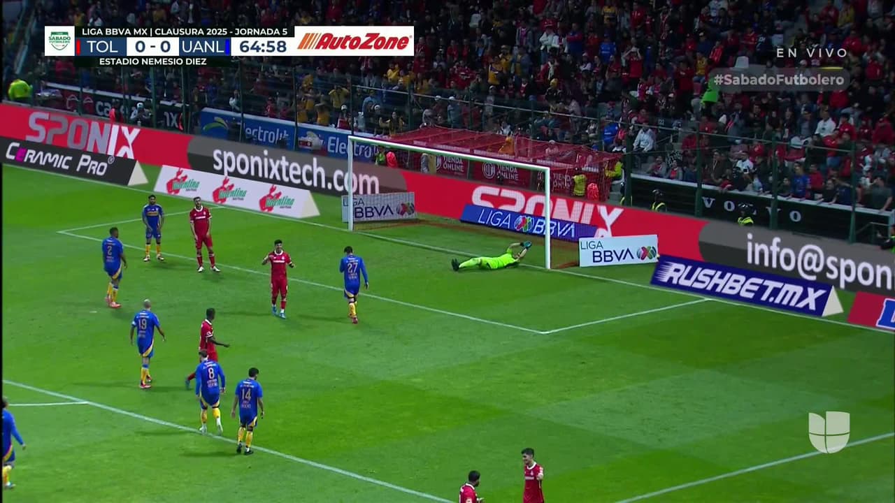 Tiro atajado Por arriba en el centro del arco. Alexis Vega (Toluca) Disparo con la derecha desde fuera del área.