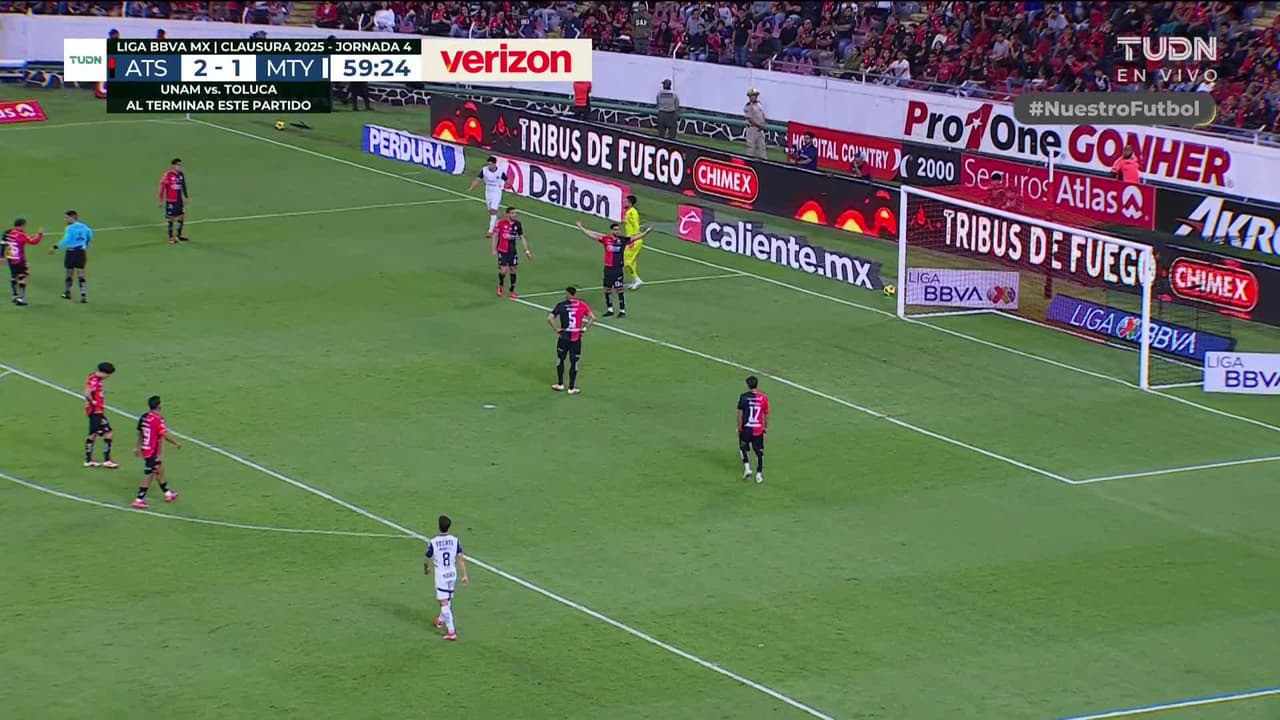 Tiro atajado raso al centro del arco. Alfonso Alvarado (Monterrey) zurdazo sin ángulo desde la izquierda. Asistencia de Sergio Canales.
