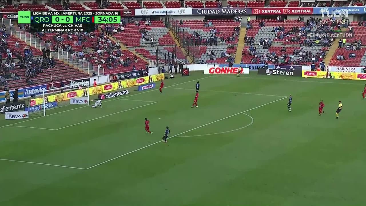 Tiro atajado. Alí Ávila (Querétaro) Disparo con la derecha desde el lado derecho dentro del área.