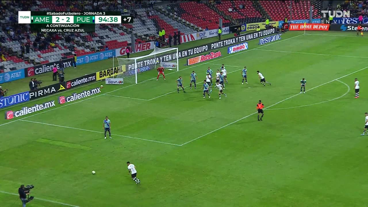 Tiro atajado raso al centro del arco. Álvaro Fidalgo (América) Disparo con la derecha desde fuera del área.
