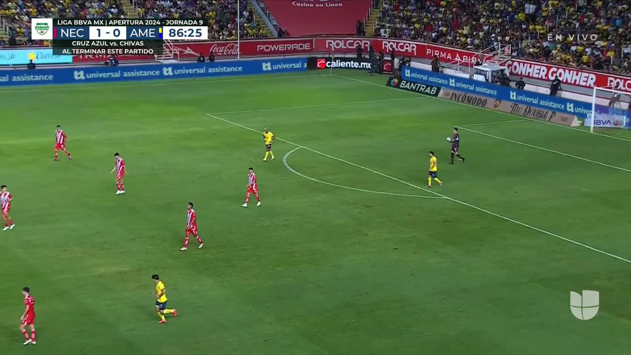 Tiro atajado raso al centro del arco. Álvaro Fidalgo (América) Disparo con la derecha desde fuera del área.