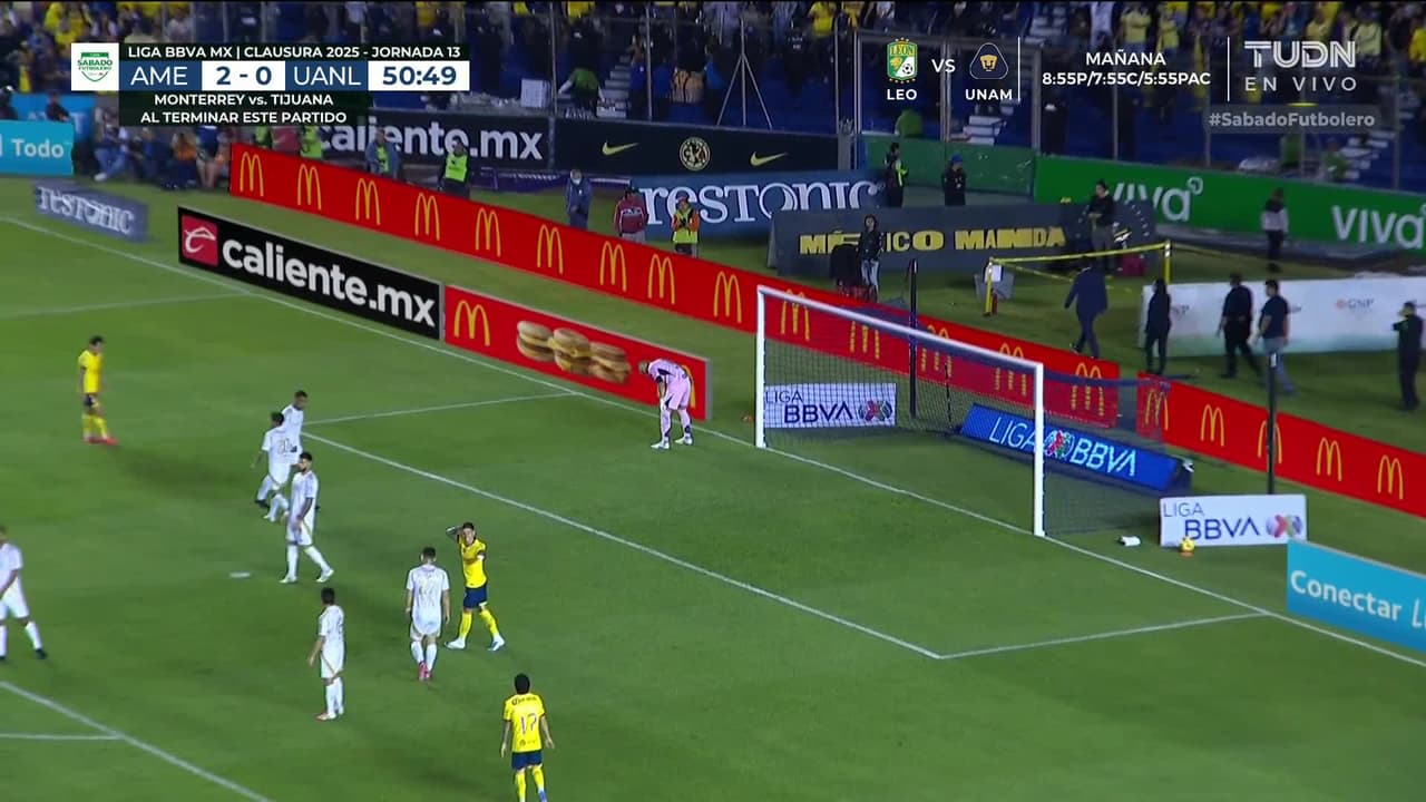 Tiro atajado al ángulo superior derecho. Álvaro Fidalgo (América) Disparo con la derecha desde fuera del área.