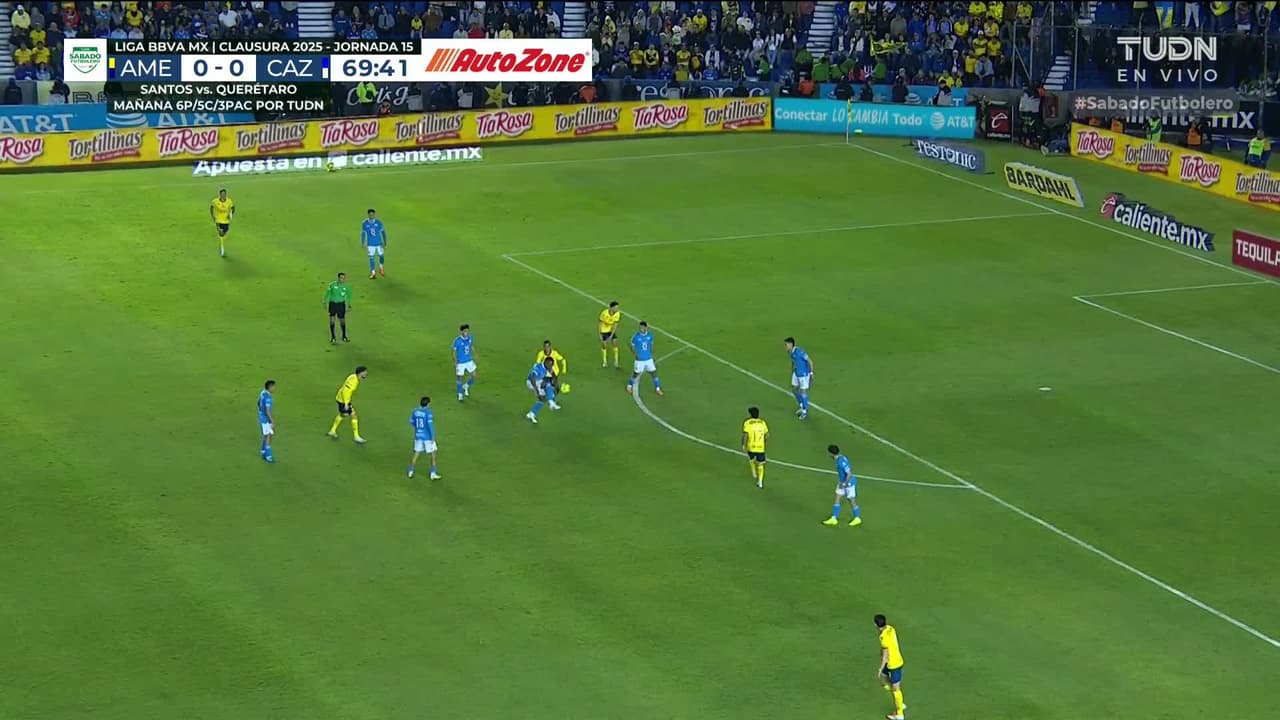 Tiro atajado raso al centro del arco. Álvaro Fidalgo (América) Disparo con la derecha desde el centro del área. Asistencia de Diego Valdés.