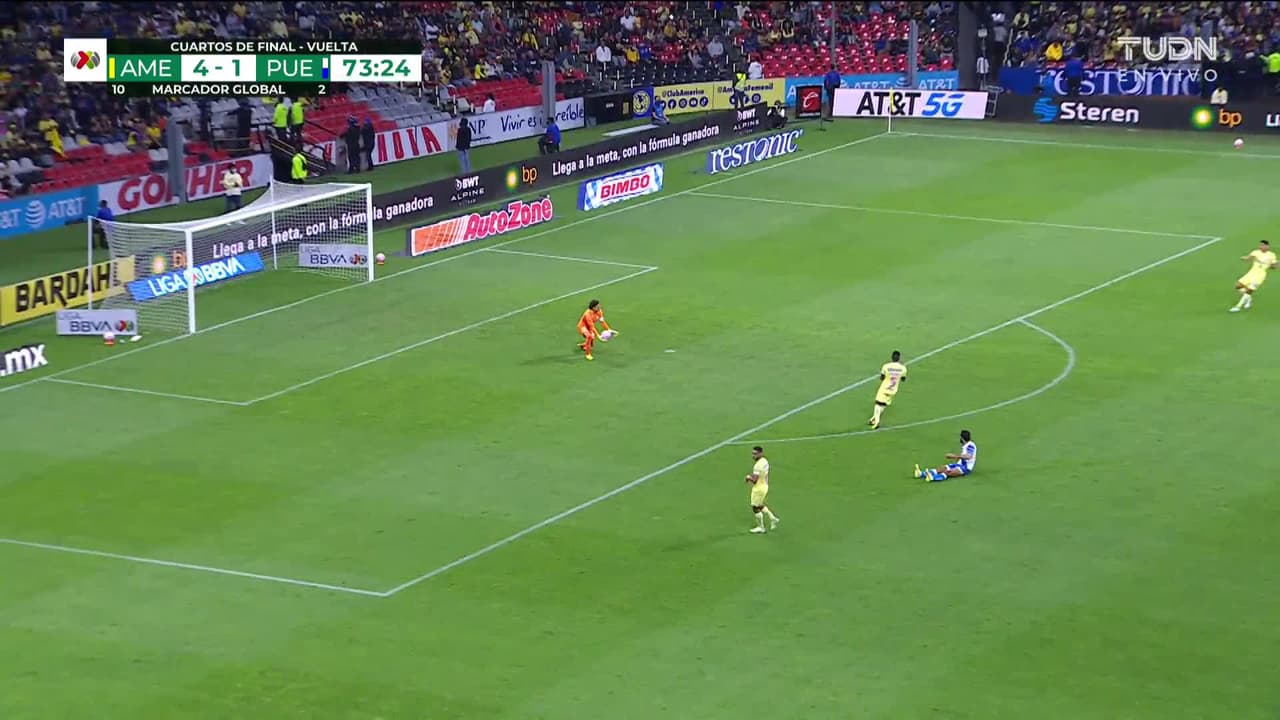 Tiro atajado raso al centro del arco. Amaury Escoto (Puebla) zurdazo desde fuera del área.
