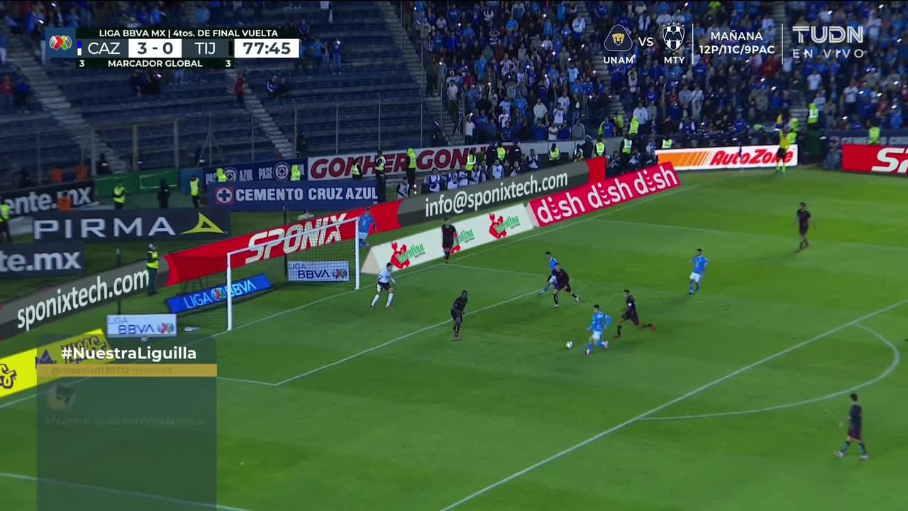 Tiro atajado. Andrés Montaño (Cruz Azul) zurdazo desde fuera del área.