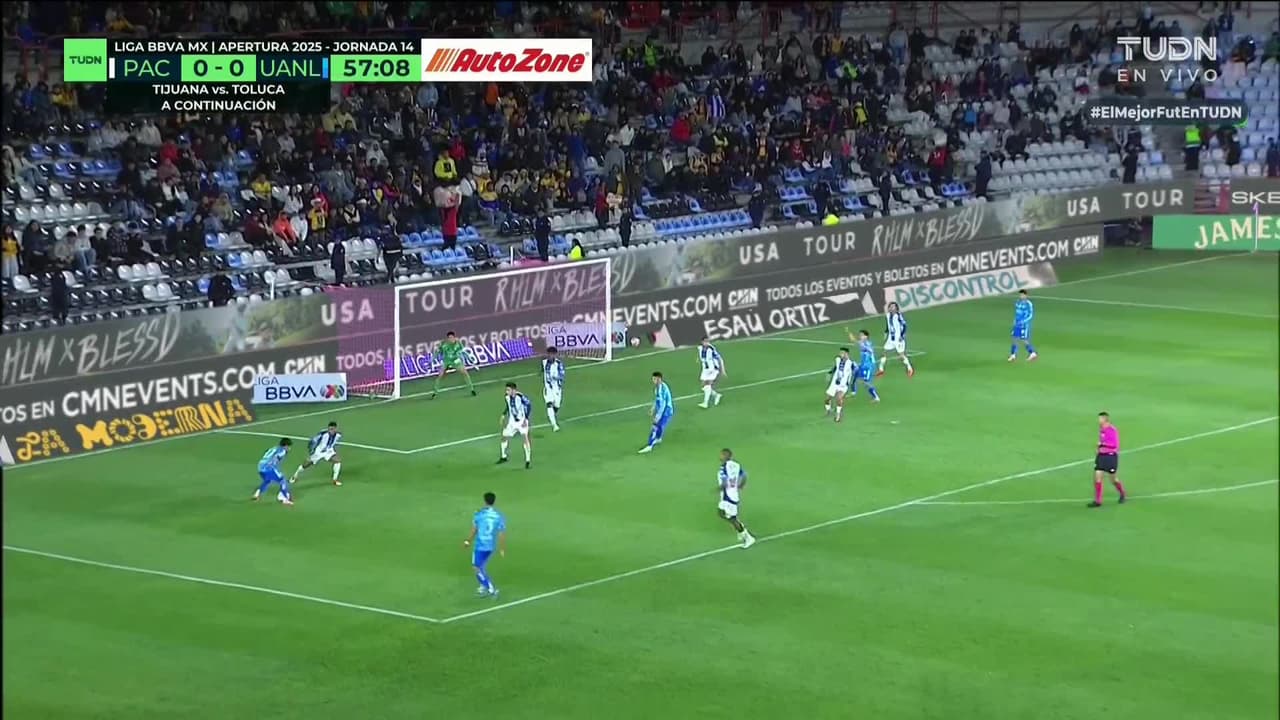 Tiro atajado raso al centro del arco. Ángel Correa (Tigres) Disparo con la derecha desde el lado derecho dentro del área. Asistencia de Diego Lainez.