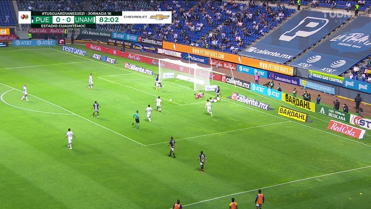 Tiro atajado. Ángel García (Pumas UNAM) Disparo con la derecha desde fuera del área.