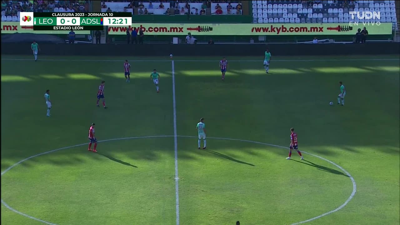Tiro atajado junto al lado derecho de la portería. Ángel Mena (León) Disparo con la derecha desde el lado derecho dentro del área. Asistencia de Iván Moreno.