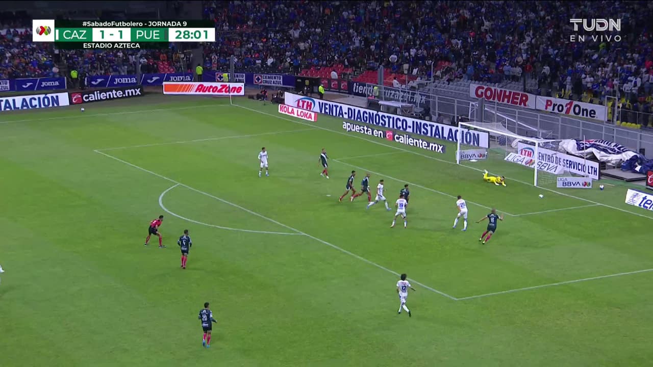 Tiro atajado al ángulo superior derecho. Ángel Romero (Cruz Azul) Disparo con la derecha desde el centro del área. Asistencia de Luis Mendoza con un centro al área.