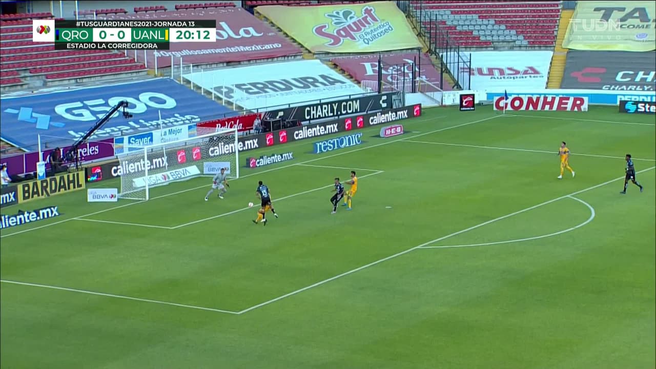 Tiro atajado Por arriba en el centro del arco. Ángel Sepúlveda (Querétaro) disparo de cabeza desde el centro del área. Asistencia de Gonzalo Montes con un centro al área.