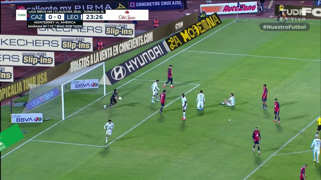 Tiro atajado. Ángel Sepúlveda (Cruz Azul) Disparo con la derecha desde el centro del área.