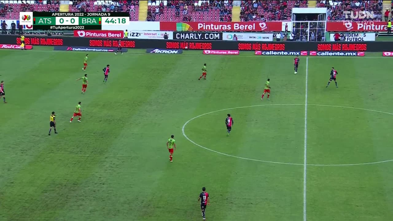 Tiro atajado al ángulo superior derecho. Aníbal Chalá (Atlas) disparo de cabeza desde el centro del área. Asistencia de José Abella con un centro al área.