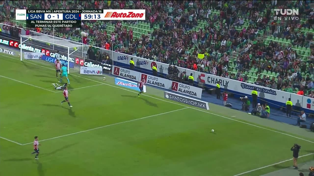 Tiro atajado. Anthony Lozano (Santos Laguna) Disparo con la derecha a quemarropa desde el lado derecho.