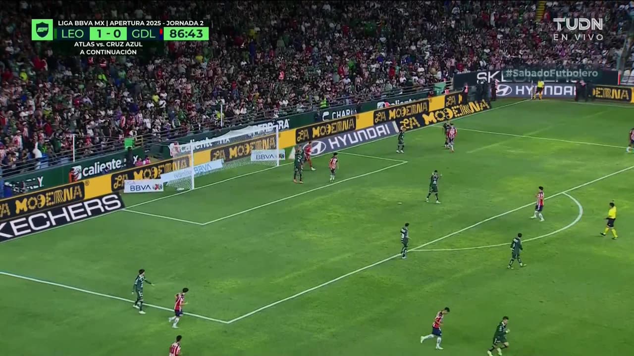 Tiro atajado Por arriba en el centro del arco. Armando González (Chivas ) disparo de cabeza a quemarropa desde el lado derecho. Asistencia de Efraín Álvarez con un centro al área.