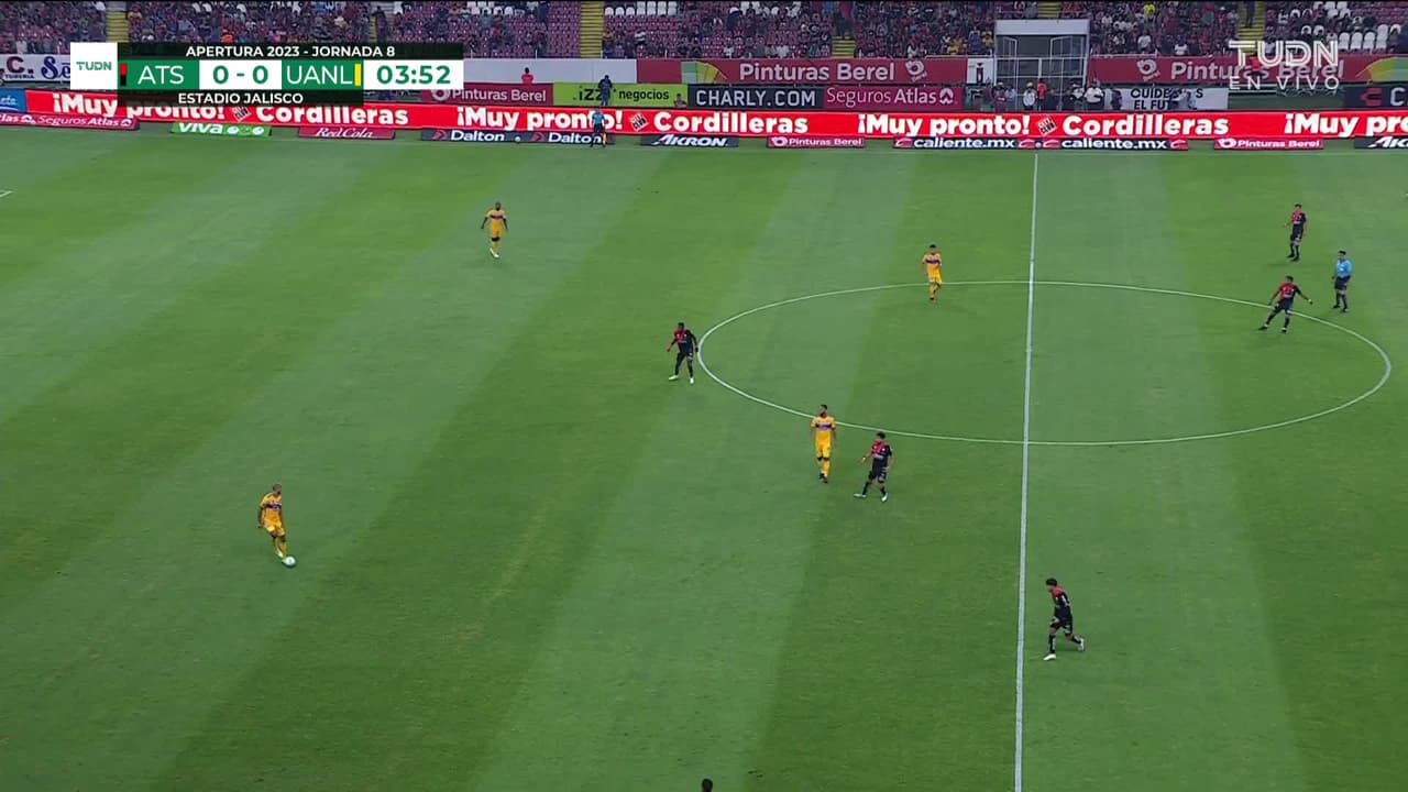Tiro atajado junto al lado derecho de la portería. Augusto Solari (Atlas) zurdazo desde el lado derecho dentro del área.