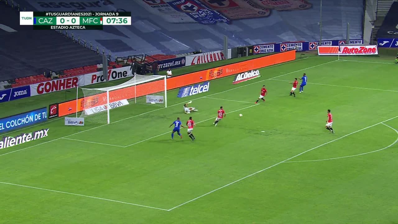 Tiro atajado Por arriba en el centro del arco. Bryan Angulo (Cruz Azul) Disparo con la derecha desde el lado derecho dentro del área. Asistencia de Pol Fernandez.