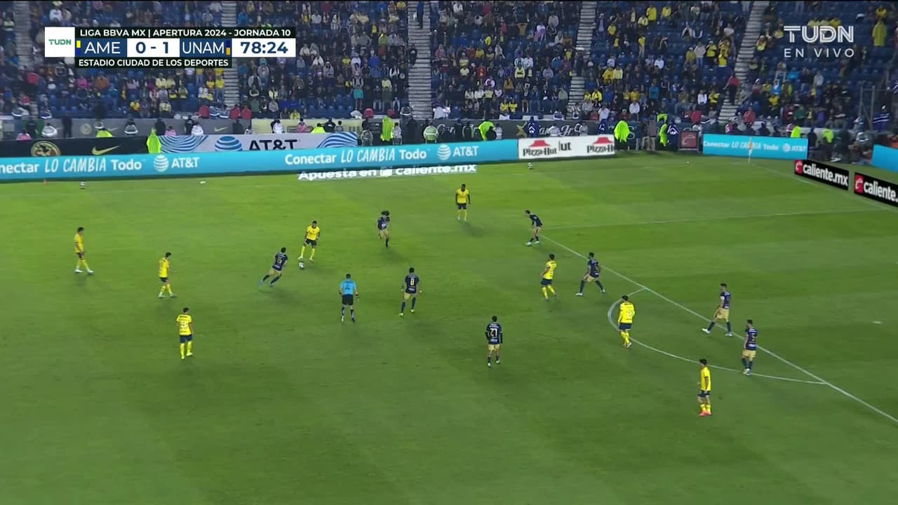 Tiro atajado raso al centro del arco. Brian Rodríguez (América) Disparo con la derecha desde el lado derecho dentro del área. Asistencia de Álex Zendejas.