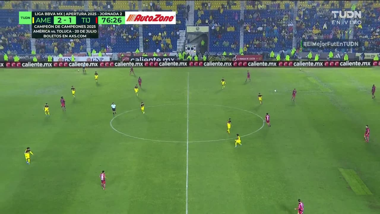 Tiro atajado al ángulo superior derecho. Brian Rodríguez (América) Disparo con la derecha desde el lado izquierdo dentro del área.