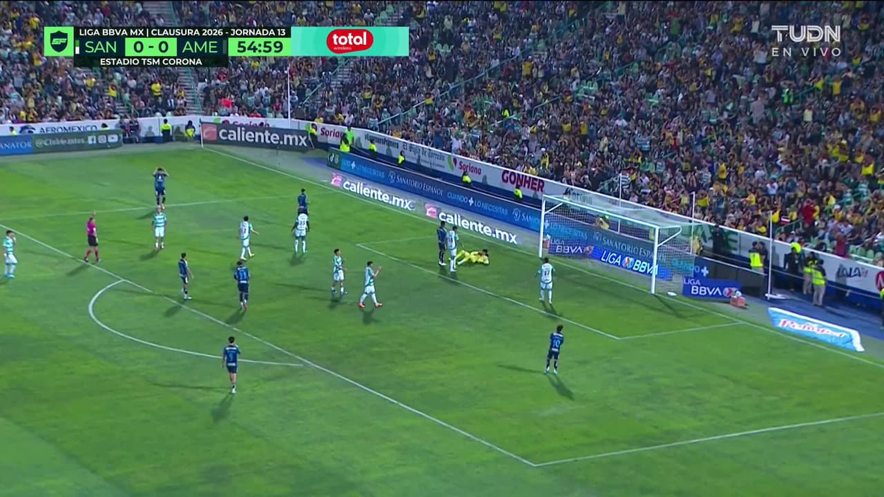 Tiro atajado Por arriba en el centro del arco. Brian Rodríguez (América) Disparo con la derecha desde el lado izquierdo dentro del área. Asistencia de Miguel Vázquez pase largo.