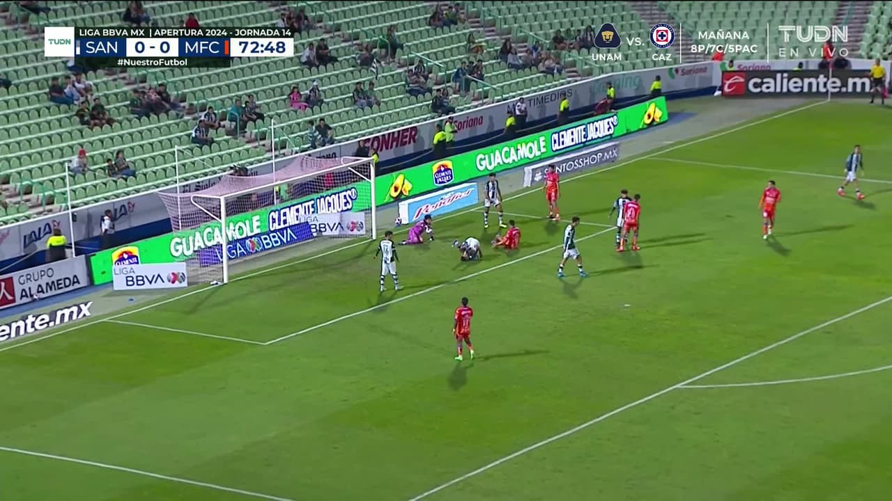 Tiro atajado junto al lado derecho de la portería. Brian Rubio (Mazatlán FC) Disparo con la derecha a quemarropa desde el lado derecho. Asistencia de Bryan Colula.