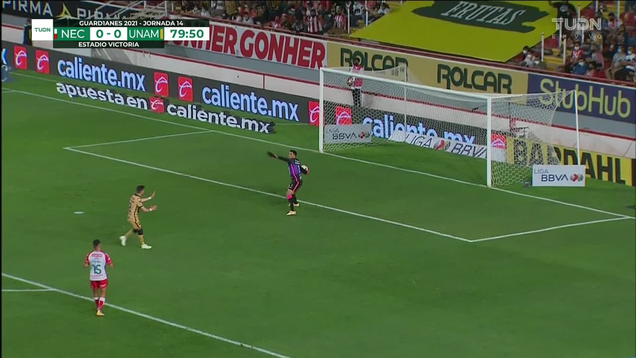 Tiro atajado junto al lado derecho de la portería. Bryan Carvallo (Necaxa) Disparo con la derecha desde fuera del área. Asistencia de Jairo González.