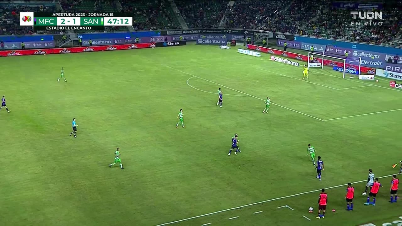 Tiro atajado por abajo a la izquierda. Bryan Colula (Mazatlán FC) zurdazo desde fuera del área. Asistencia de Josué Colmán.