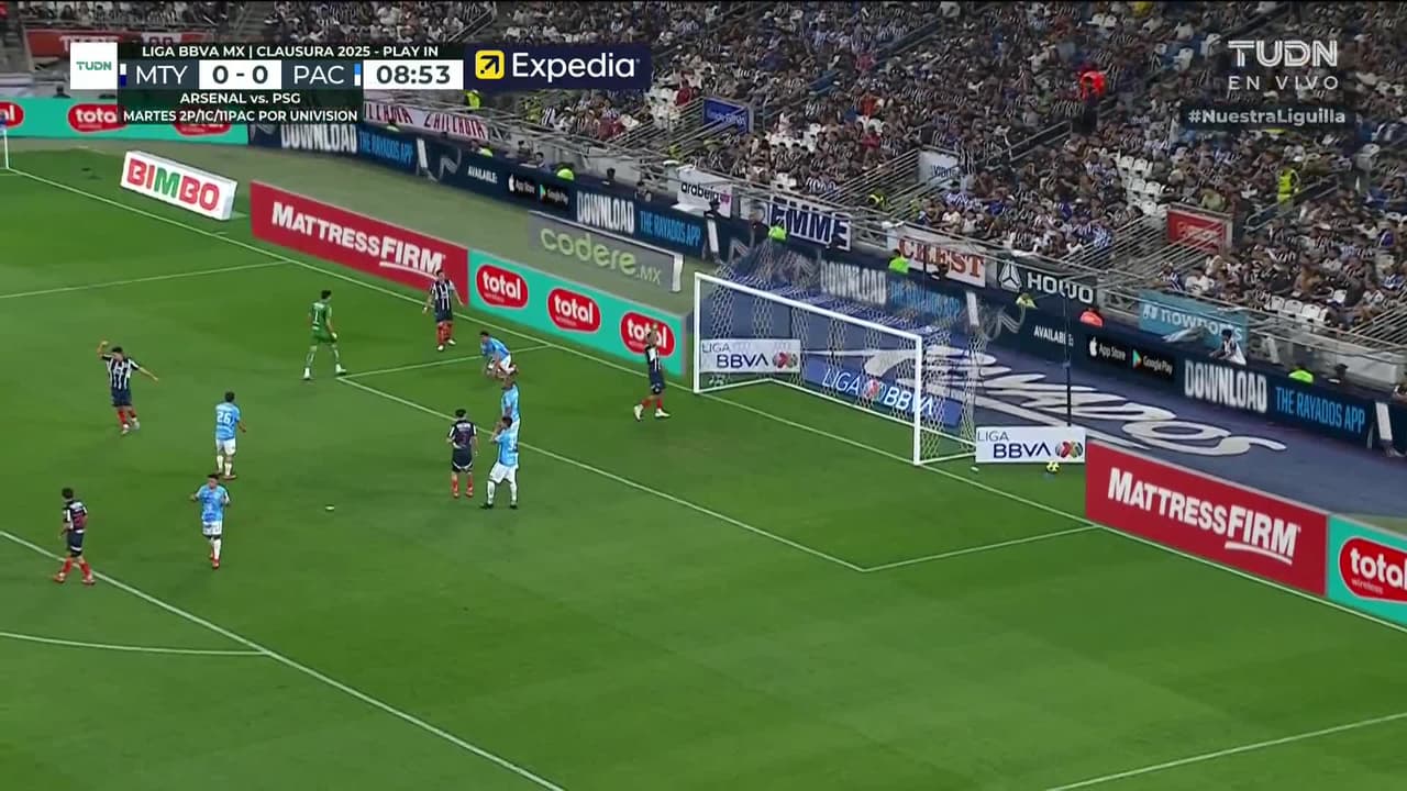 Tiro atajado. Bryan González (Pachuca) zurdazo desde el lado izquierdo dentro del área.