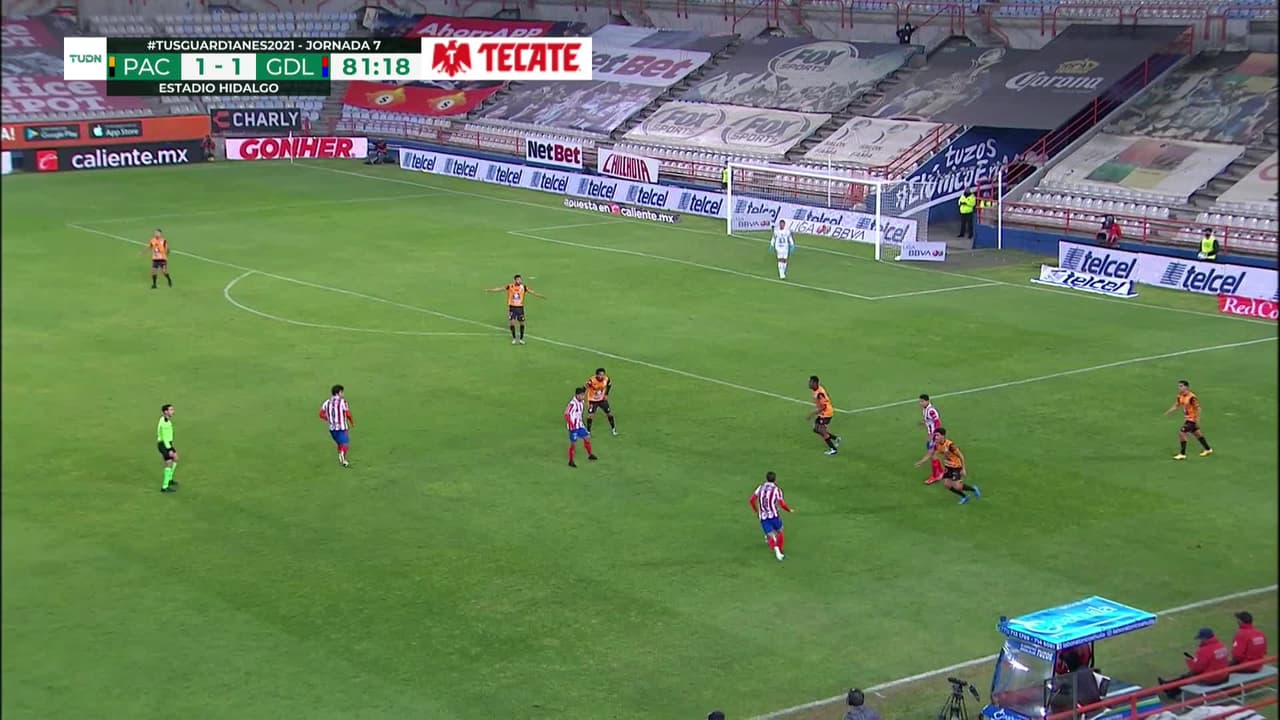 Tiro atajado raso al centro del arco. Uriel Antuna (Chivas ) Disparo con la derecha desde el lado izquierdo dentro del área. Asistencia de Alejandro Mayorga.