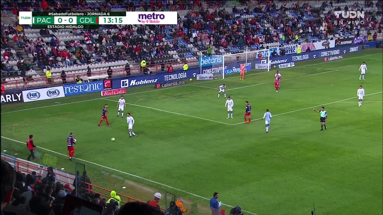 Tiro atajado al ángulo superior derecho. Carlos Cisneros (Chivas ) disparo de cabeza desde el centro del área. Asistencia de Víctor Guzmán con un centro al área.