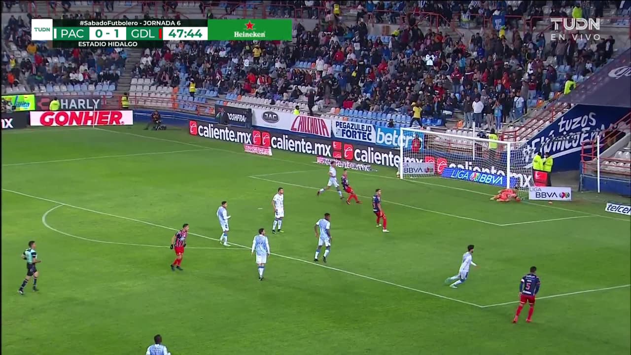 Tiro atajado junto al lado derecho de la portería. Carlos Cisneros (Chivas ) zurdazo desde fuera del área.