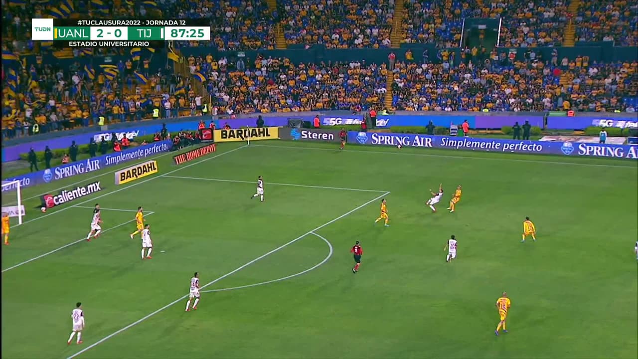 Tiro atajado raso al centro del arco. Carlos González (Tigres) Disparo con la derecha desde el centro del área. Asistencia de Sebastián Córdova.